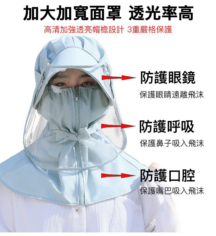 【限量秒殺】360°防疫防塵防飛沫抗UV帽